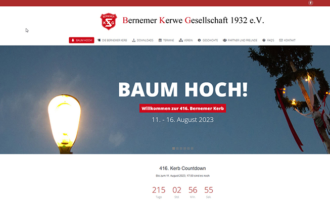 Webauftritt für die Ausrichter der Bernemer Kerb. Online Informationsangebot rund um die Kerb, Downloads und Veranstaltungskalender für öffentliche und interne Termine