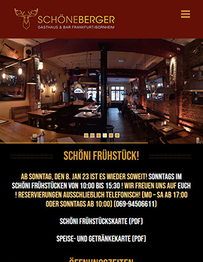 "One Page" Website für beliebtes Bornheimer Szenelokal. Öffnungszeiten, Impressionen, Informationen zu Speisen & Getränken sowie Download aktueller Speise- bzw. Abendkarten.